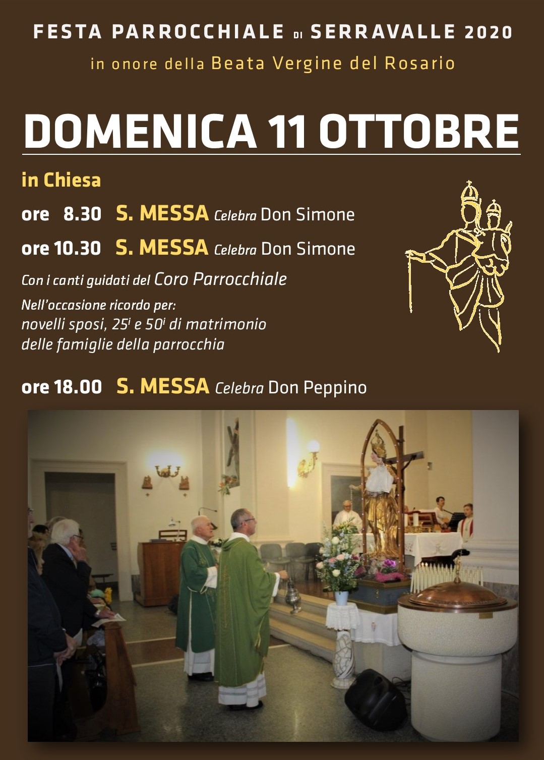 In occasione della FESTA PARROCCHIALE DI SERRAVALLE, in onore della Beata Vergine del Rosario, DOMENICA 11 OTTOBRE, sono in programma in chiesa le seguenti celebrazioni: