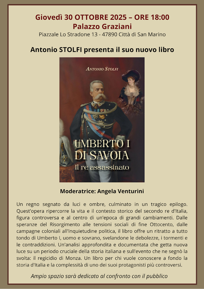 Antonio Stolfi firma il nuovo libro: “Umberto I di Savoia – Il re assassinato”