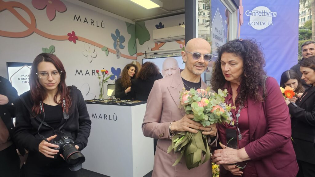 Il fiore come gesto di relazione anche nella Marlù Dreamers House a Sanremo, dove Mara Verbena ha portato le sue composizioni floreali nello spazio Marlù, noto marchio di gioielli sammarinese. In questa occasione è stato consegnato un mazzo di fiori a Enzo Miccio, presente nella Marlù Dreamers House, per offrire ai presenti un’esperienza di styling unica e personalizzata. Sono stati distribuiti dei fiori anche al pubblico a dimostrazione di come un gesto semplice possa avere un alto valore comunicativo, soprattutto se espresso da un fiore, che già di per sé significa dono, relazione, contatto diretto.