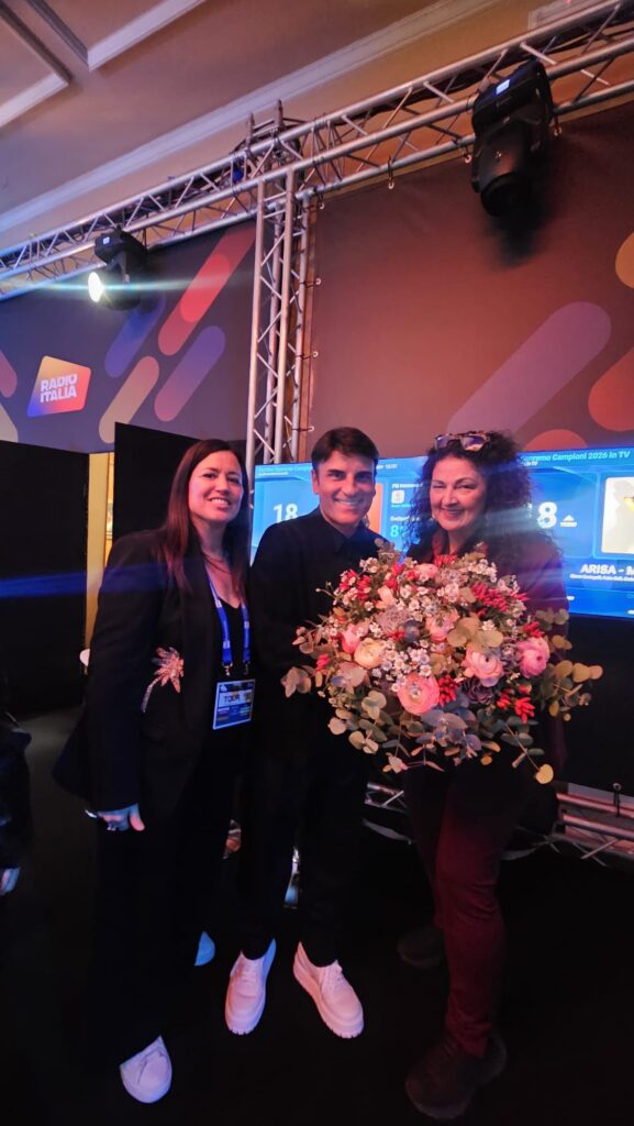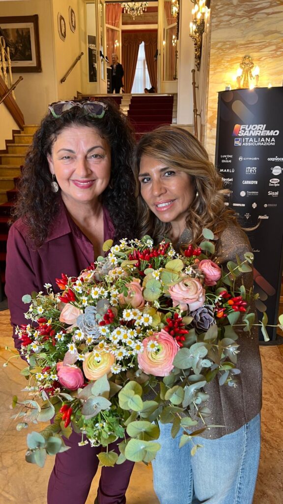 Infine, l’incontro con Sal Da Vinci, frutto di intuizione e tempismo, divenuto nell’esperienza di Mara Verbena uno degli episodi più emblematici della settimana. Sapendo che l’artista terrà il 7 ottobre, a San Marino, il primo concerto del suo prossimo tour, la floral design ha realizzato per lui un bouquet altamente simbolico, composto da: peperoncini rossi portafortuna napoletani; margherite, simbolo di eleganza e semplicità; ranuncoli, fiore identitario di Sanremo; piante grasse, metafora di durata (per sempre, come la sua canzone…). Un omaggio pensato come racconto visivo della sua musica. Mara Verbena è riuscita a consegnarglielo personalmente, assieme a Marta Fabbri di Marlù, accompagnandolo con la promessa che al concerto di San Marino il teatro sarà riempito di fiori.