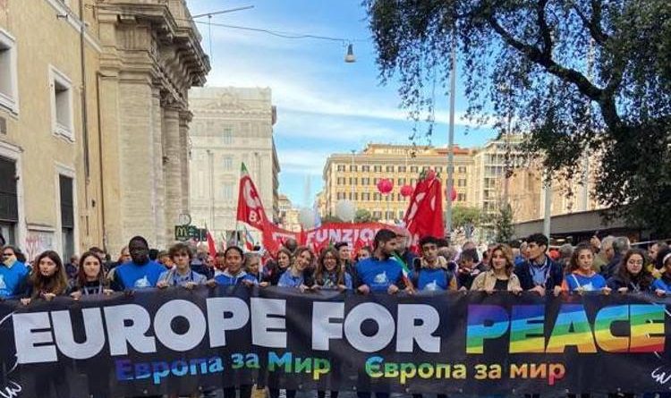 Read MoreUna bandiera lunga 50 metri, striscioni e cori di «Bella Ciao» alla marcia in favore della pace in Ucraina che