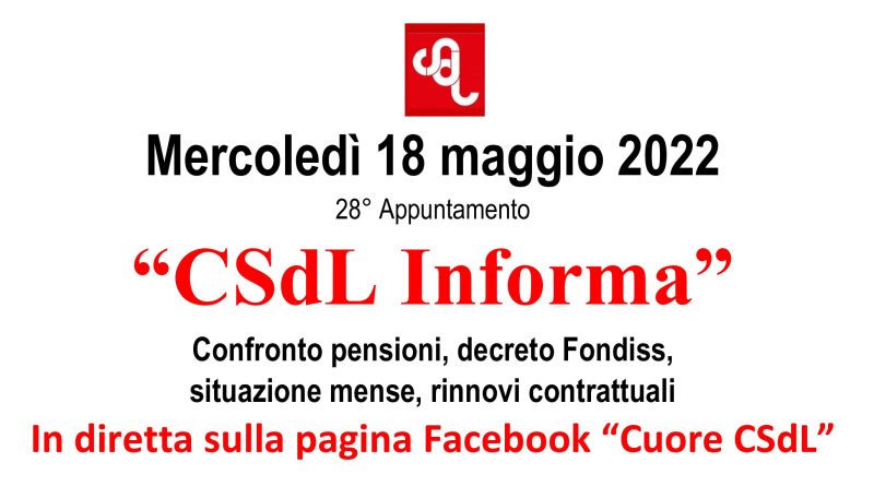 Read MoreAnche la puntata di domani di CSdL Informa sarà ricca di argomenti di attualità; tra questi il punto sul confronto