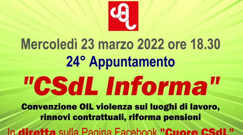 Read MoreÈ in programma domani una nuova puntata di “CSdL Informa”, in diretta alle 18.30 sulla pagina Facebook “CSdL Informa”. I