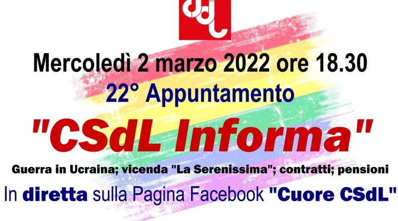 Read MoreTanti gli argomenti in discussione nella puntata di domani di “CSdL Informa”, che sarà trasmesso in diretta Facebook alle 18.30