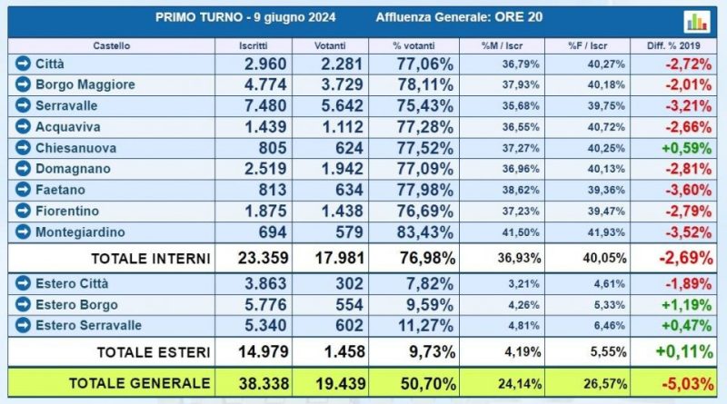 Read MoreLa rilevazione finale, effettuata alle ore 20.00, indica che il 50,70% degli aventi diritto, pari a 38.338 elettori, si è