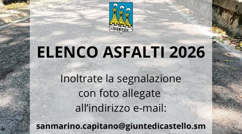 Nei primi giorni della prossima settimana la Giunta di Città consegnerà l’elenco degli asfalti da rifare alla Segreteria competente. È