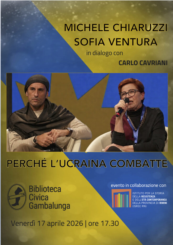 Venerdì 17 aprile, nella Biblioteca Civica Gambalunga di Rimini (ore 17.30), gli studiosi Michele Chiaruzzi e Sofia Ventura presentano Perché l’Ucraina combatte (Linkiesta Book, 2025), in dialogo con Carlo Cavriani, capocronista del Resto del Carlino Rimini. L’appuntamento di approfondimento storico e politico, organizzato jn collaborazione con l’Istituto per la Storia della Resistenza e dell’Età contemporanea della provincia di Rimini, nell’ambito della rassegna Libri da queste parti, si interroga sulla natura della resistenza ucraina, espressa anche sul terreno della cultura e della comunicazione.