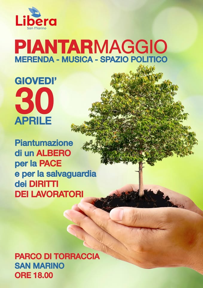 Ma non si devono sottovalutare gli atti simbolici. Sono questi a radicarsi nell’immaginario collettivo e rafforzano un determinato modello socioculturale. Perciò, anche quest’anno, Libera riprende la tradizione del PIANTAR MAGGIO, dando appuntamento a tutti il pomeriggio del 30 maggio, ore 18, al Parco di Torraccia. Qui, si provvederà alla piantumazione di un albero, con il quale si vuole simboleggiare la pace e la salvaguardia dei diritti dei lavoratori.