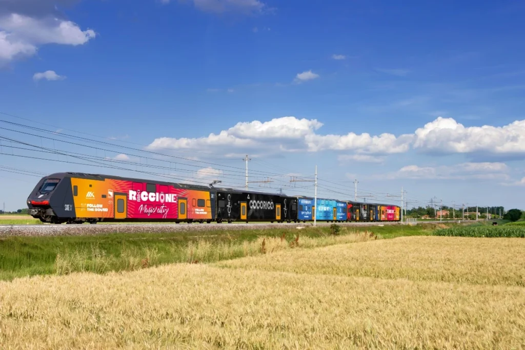 Il secondo convoglio Rock di Trenitalia Tper sarà personalizzato con la nuova visual identity dalla campagna di comunicazione frutto della collaborazione tra Comune di Riccione, Trenitalia Tper (la società che gestisce il trasporto ferroviario regionale in Emilia-Romagna), Siae e i simboli della nightlife della riviera: Cocoricò, Samsara Beach e Space Riccione.