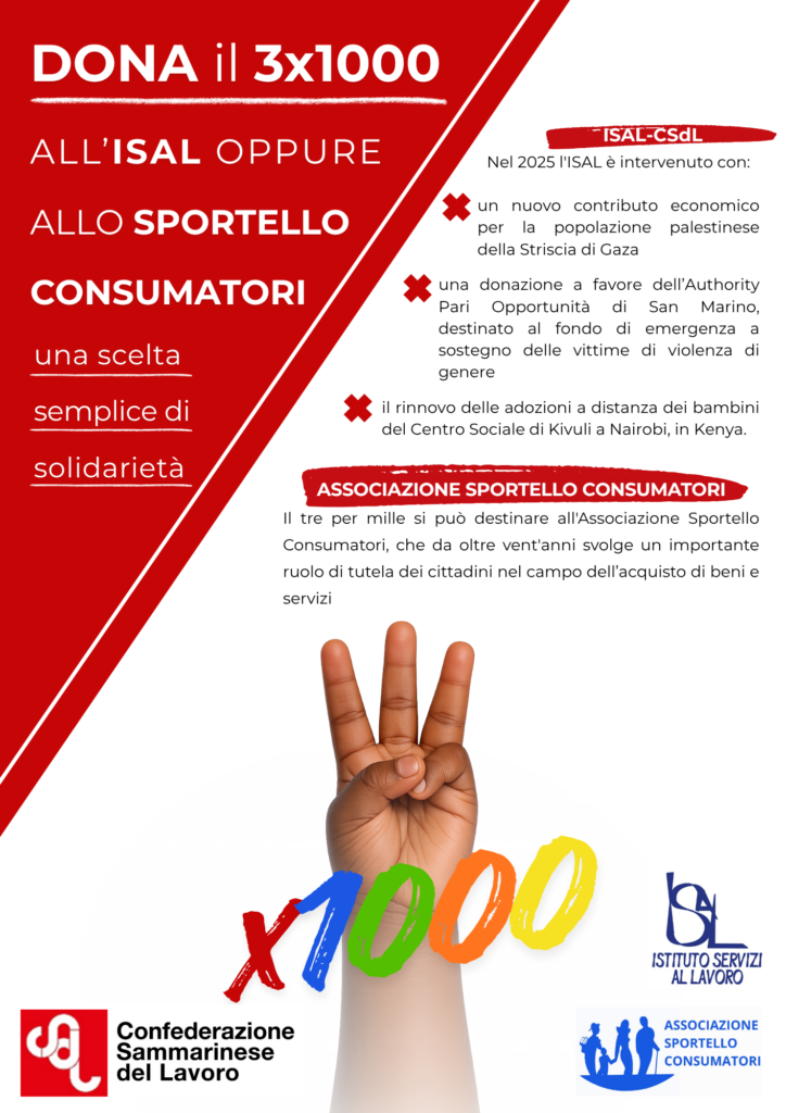San Marino. Tre per mille, all’ISAL-CSdL o allo Sportello Consumatori