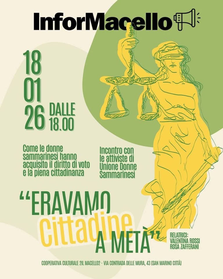 DOMENICA 18 GENNAIO: “Eravamo cittadine a metà” – come le sammarinesi hanno acquisito il diritto di voto e la piena cittadinanza”