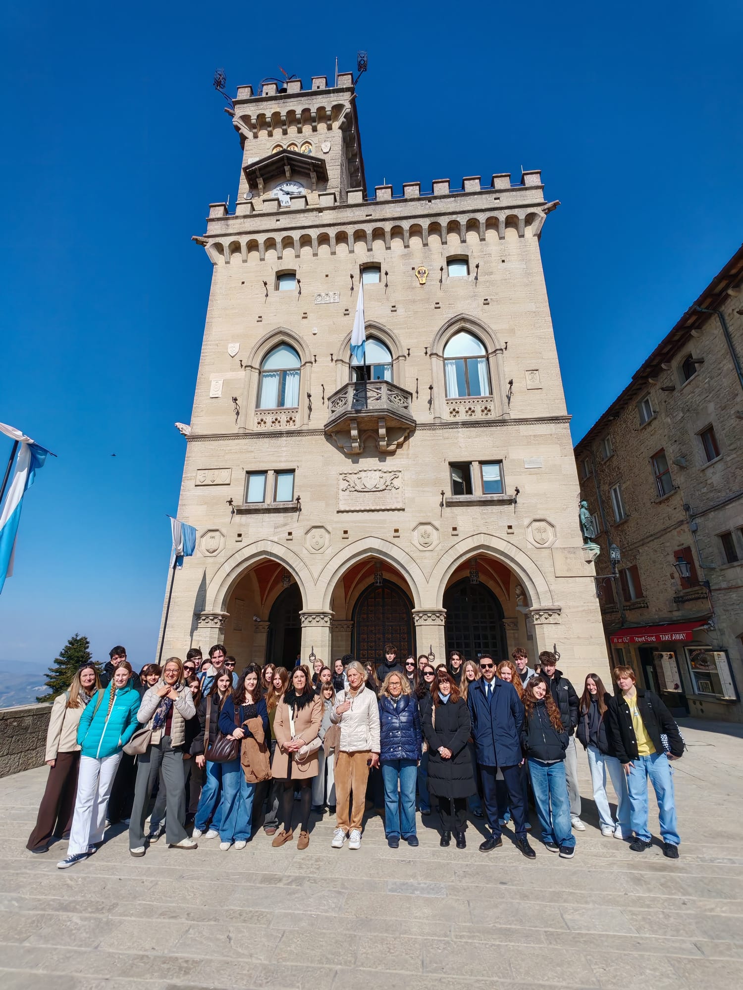 Camminando tra le contrade del centro storico, in quell’atmosfera di cordiale operosità che caratterizza le istituzioni sammarinesi, la delegazione ha avuto il piacere di incrociare il Segretario di Stato per il Turismo, Federico Pedini Amati, e il Segretario di Stato per il Lavoro, Alessandro Bevitori. Tali incontri, nati dalla naturale accessibilità di una Repubblica a misura d’uomo, hanno permesso ai ragazzi di scambiare brevi ma significative battute con i vertici dell’Esecutivo, che si sono soffermati con sincero interesse a salutare i giovani ospiti. È proprio in questa dimensione di prossimità che risiede il fascino del Titano: un luogo dove la solennità della storia si intreccia quotidianamente con la disponibilità delle sue figure rappresentative, rendendo l’esperienza degli studenti ancora più autentica e indimenticabile.