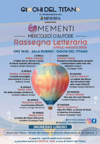 San Marino. Tornano gli autori a “Mementi” la brillante rassegna letteraria della Giochi del Titano. Sempre di mercoledì