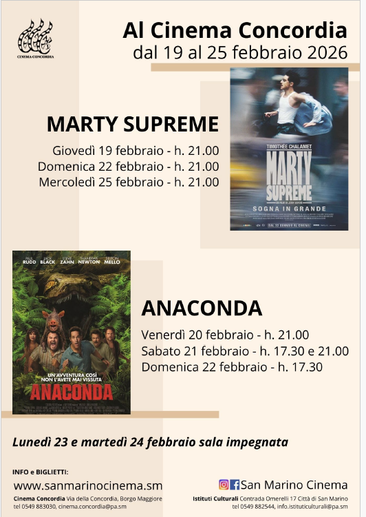Programmazione San Marino Cinema dal 19 al 25 febbraio 2026