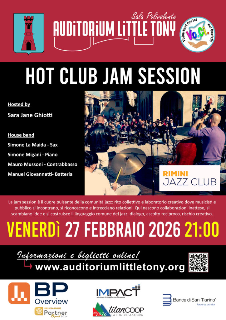 L’Auditorium di Serravalle si prepara a trasformarsi in un vero jazz club per una serata che celebra l’essenza più autentica e vibrante del jazz. Il 27 febbraio, alle 21:00, arriva la Hot Club Jam Session, un evento realizzato in collaborazione con Rimini Jazz Club e dedicato alla storia, all’atmosfera e allo spirito creativo delle jam session che hanno segnato la nascita del jazz moderno.