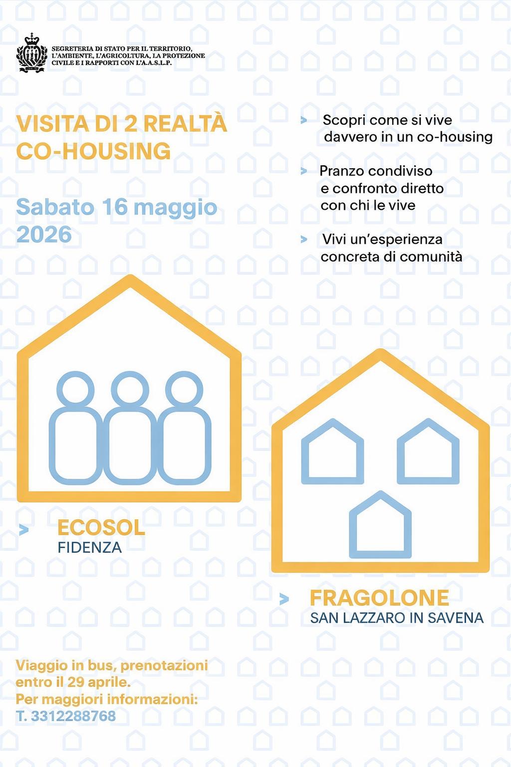 Sabato 16 maggio una delegazione sammarinese capeggiata dal Segretario Ciacci andrà a visitare due realtà significative di co-housing, per capire da vicino cosa significa vivere una comunità abitativa condivisa: