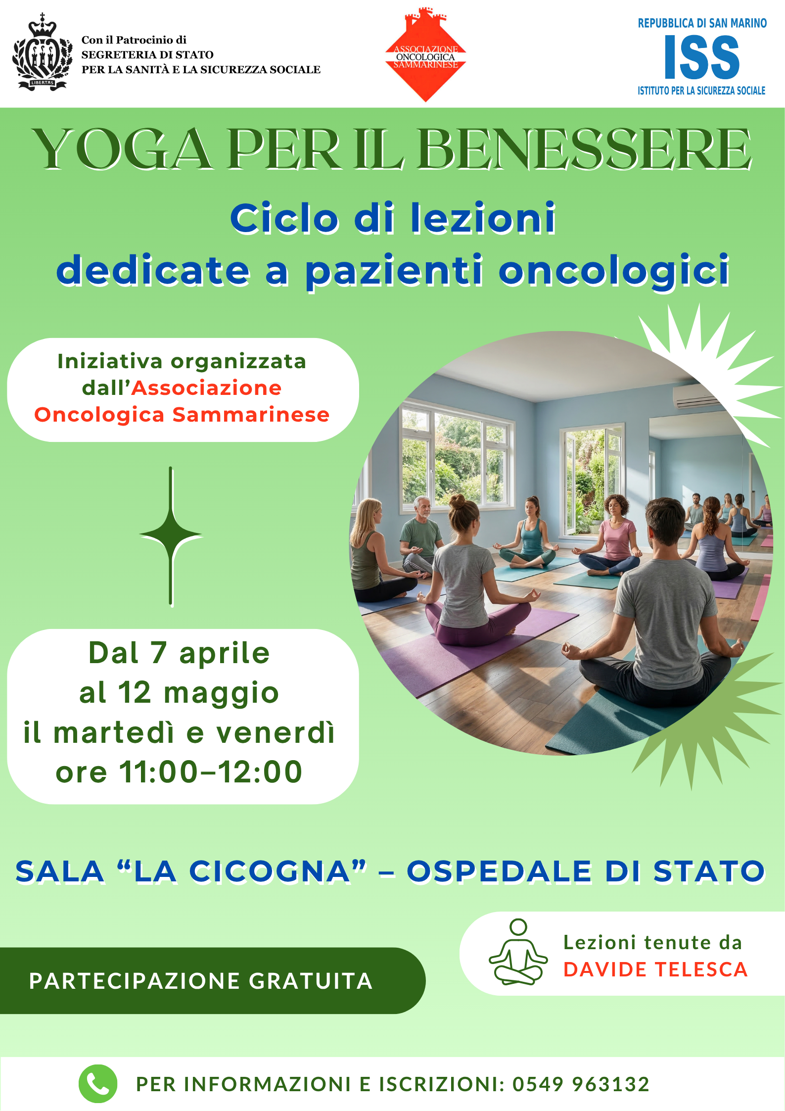 È stato presentato questa mattina in conferenza stampa dalla Presidente dell’Associazione Oncologica Sammarinese Maria Grazia Angeli e dal Direttore Generale ISS Claudio Vagnini, il ciclo di lezioni “Yoga per il benessere” dedicato ai pazienti oncologici della Repubblica di San Marino. Organizzata dall’Associazione Oncologica Sammarinese in collaborazione con l’Istituto per la Sicurezza Sociale, l’iniziativa, gode del patrocinio della Segreteria di Stato per la Sanità e la Sicurezza Sociale e nasce con l’obiettivo di offrire uno spazio di cura integrata, ascolto e sostegno alle persone in trattamento o nel follow up oncologico.