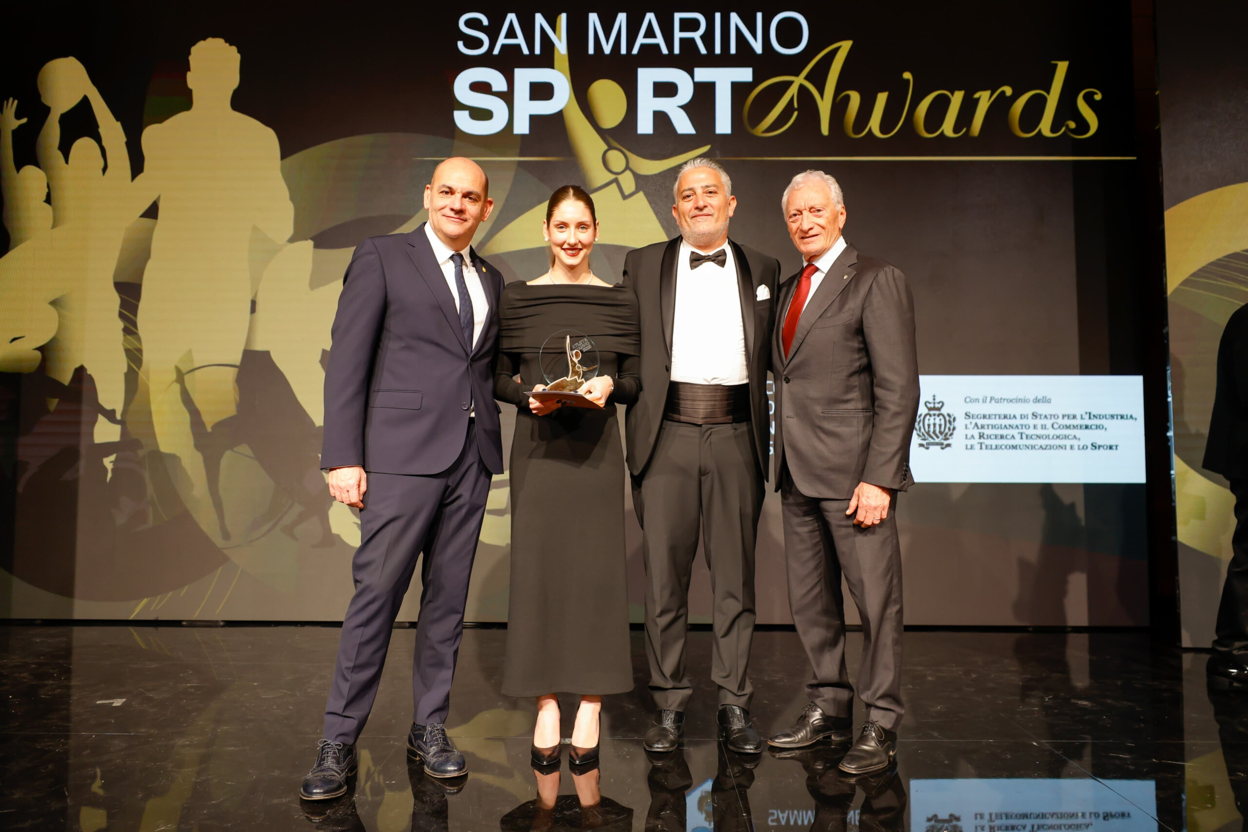 San Marino Sport Awards, Jasmine Verbena Atleta del 2025 con Alessandra Perilli, Gian Marco Berti, Doriano Bindi ed Elia Stacchini